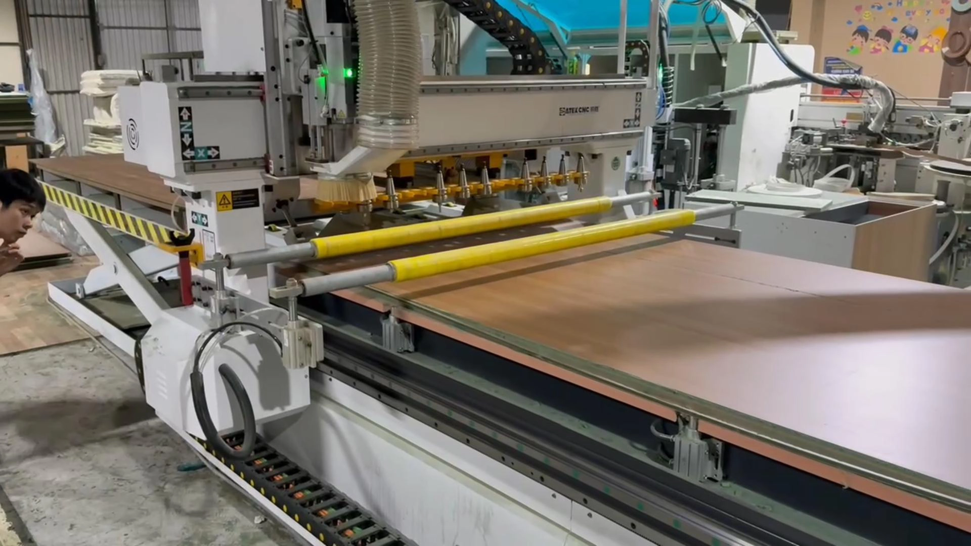 Mi run a cabinet workshop, and afta chat wid Cici, mi decide fi buy dis ATC CNC router. Di machine come wid a loading platform and unloading platform, it real handy, Mi can load up multiple boards fi cut all at once. It operate similar fi di odah router weh mi used before, since dem both use LNC system, so mi feel right at home. Big up CATEKCNC fi dis solid machine!
